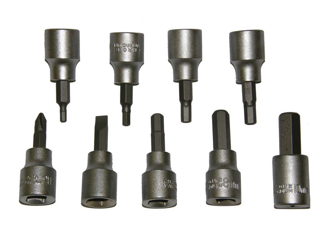 | Chrome Vanadium sockets with S-2 steel bits for superior hardness | 1-7/8" reach for recessed screws or bolts |